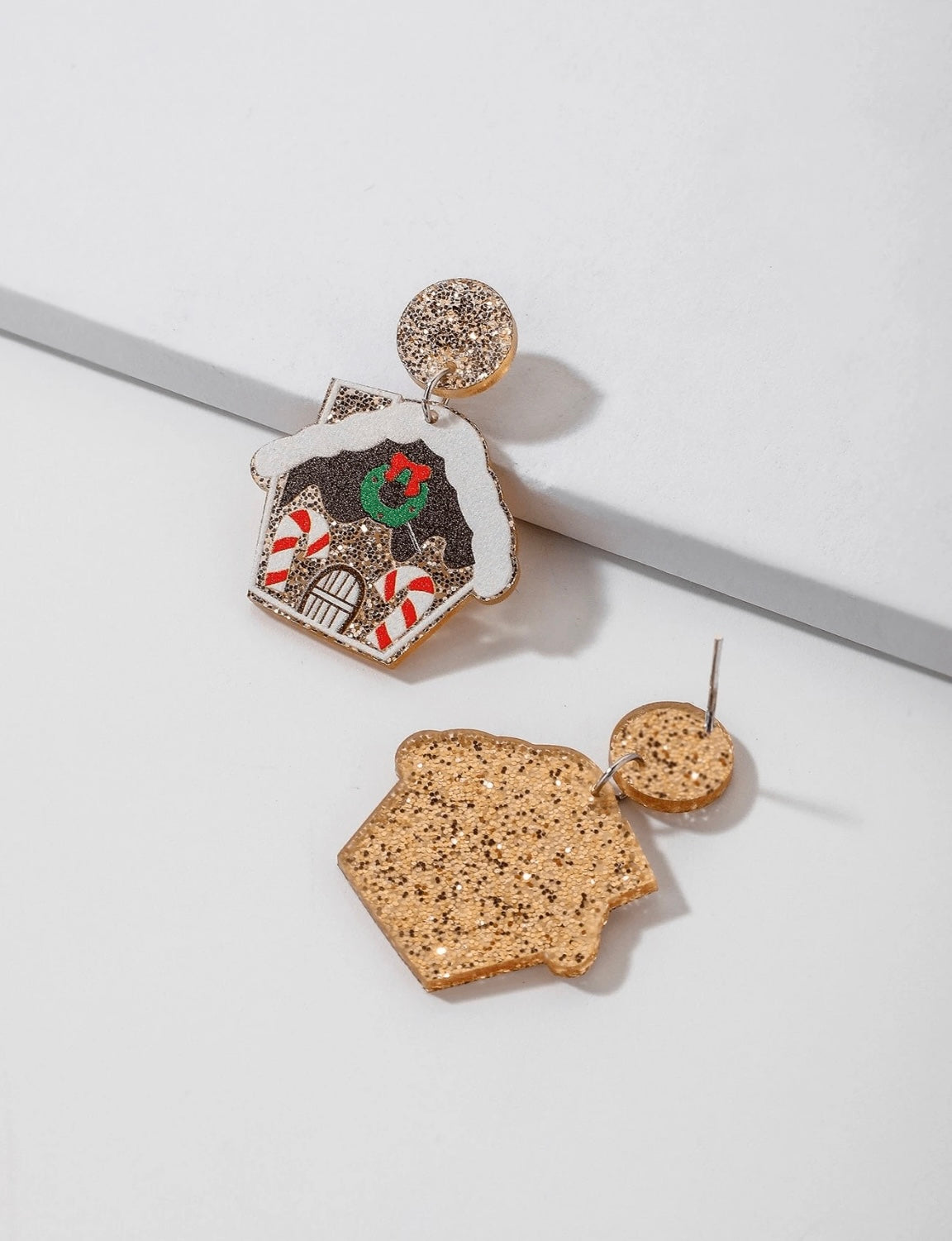 Decorate in style this season with these light weight melamine gingerbread house earrings.